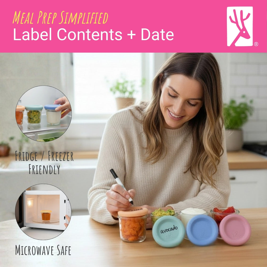 4oz Glass Baby Food Storage Jars | Food Grade Silicone Lids | Set of 12 | Neutral Colors